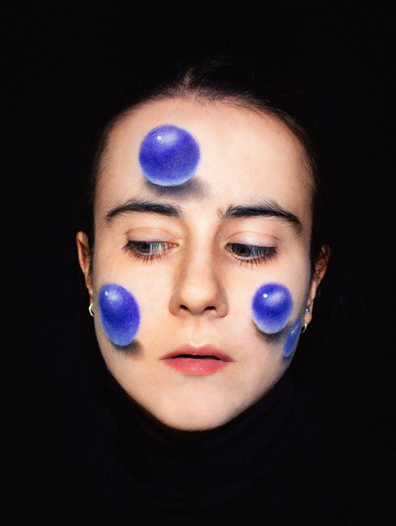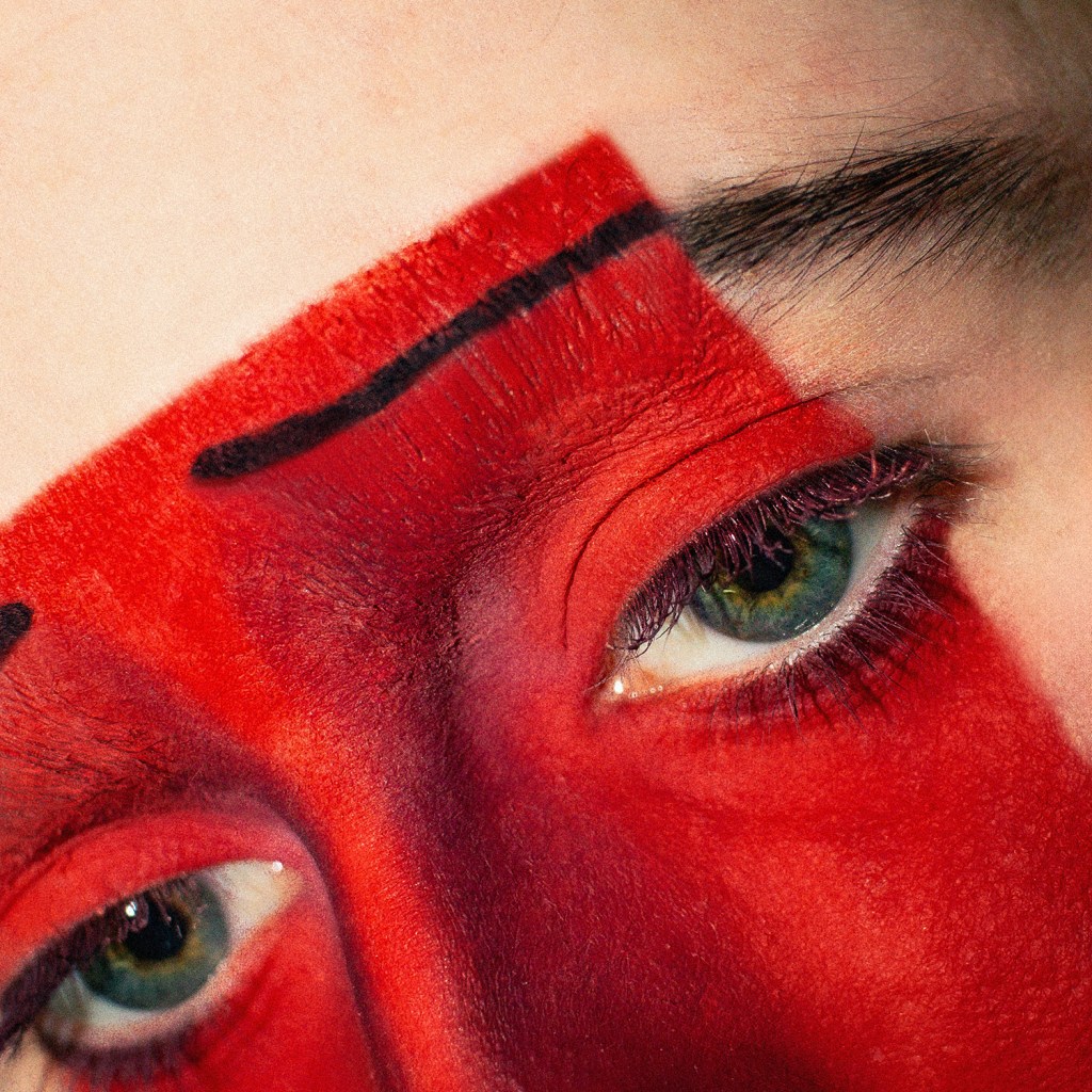 Bei dieser SeriE wurde der Versuch gewagt, Grafikdesign und Makeup zu verbinden. Dafür HAb ich drei Grundformen und -farben interpretiert. Verwendet wurde hoch pigmentierter lidschatten sowie weiße Aquafarbe als Basis.